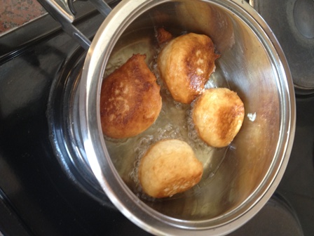 - Take small portions from the dough and mould with your hands to form small balls as you drop them into the hot oil.