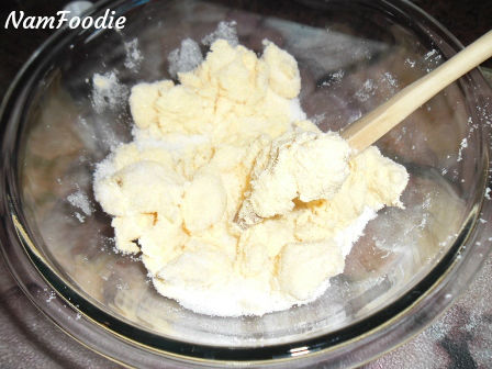 - Add flour and mix with a spatula. (You do not have to whisk and do not over mix).
