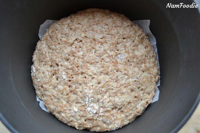 - Remove the cat iron pot from the oven and place the dough ball into the pot, cover with the lid and bake for 30 minutes.