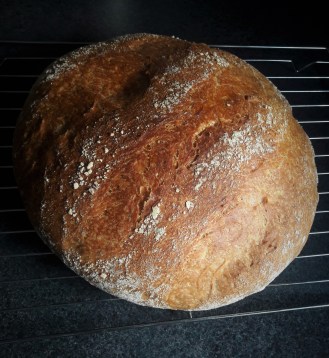 - Gently place the dough into a floured dutch oven, score the dough, reduce the oven to 200°C